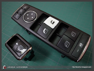Mercedes Benz C200 門板電動窗開關按鍵之環保材質(皮革漆/環保漆)氧化修復整理