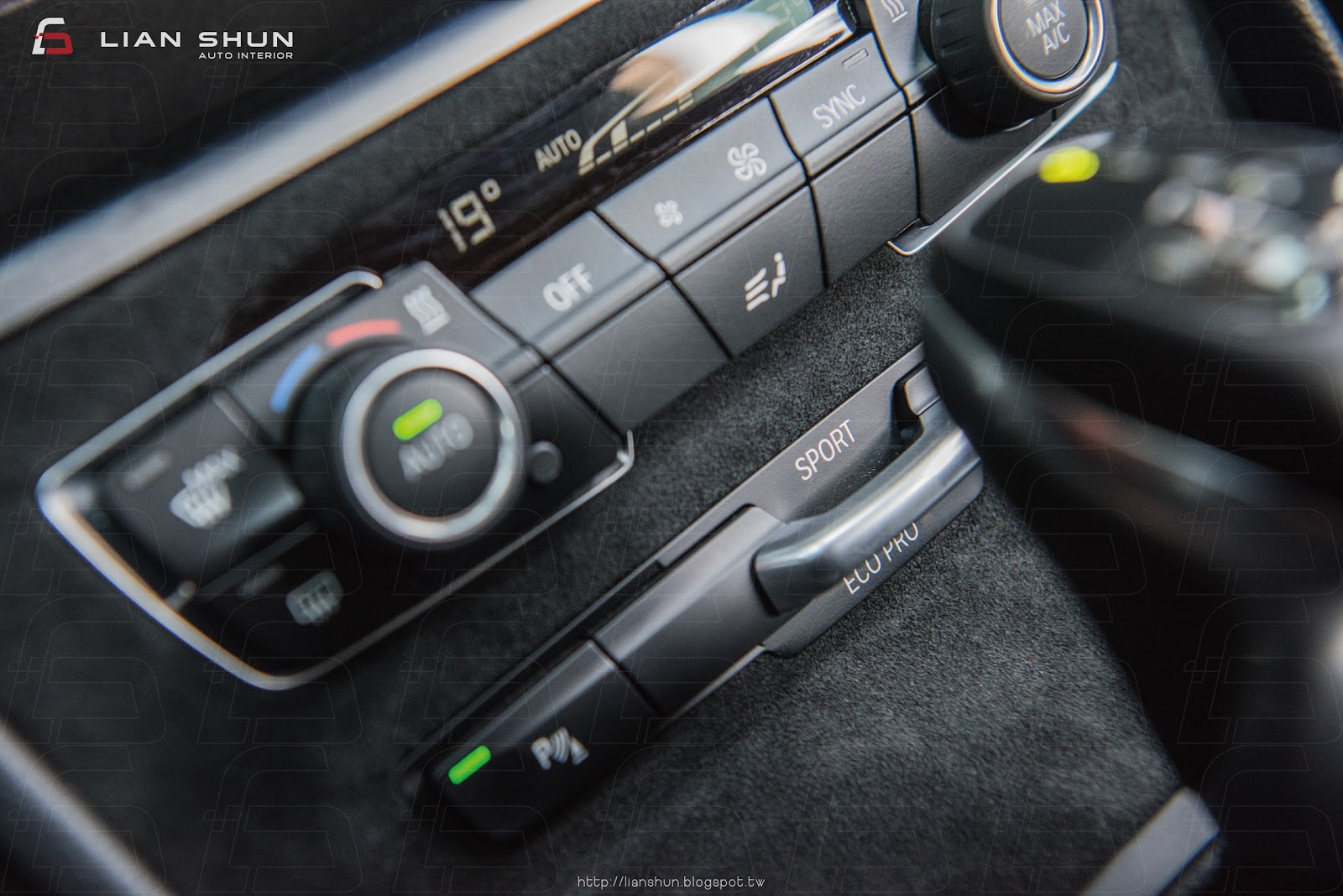 Alcantara麂皮排檔飾板、Alcantara麂皮中控空調飾板(施工後)更換台製麂皮其質感與觸感細膩度無法與義大利Alcantara麂皮媲美